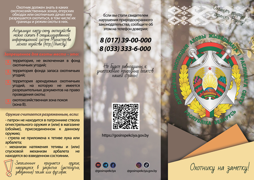 Государственной инспекцией охраны животного и растительного мира при Президенте Республики Беларусь в период с 01 октября по 31 декабря 2025 года проводится специальное комплексное мероприятие «Охота» основными задачами которого определены: