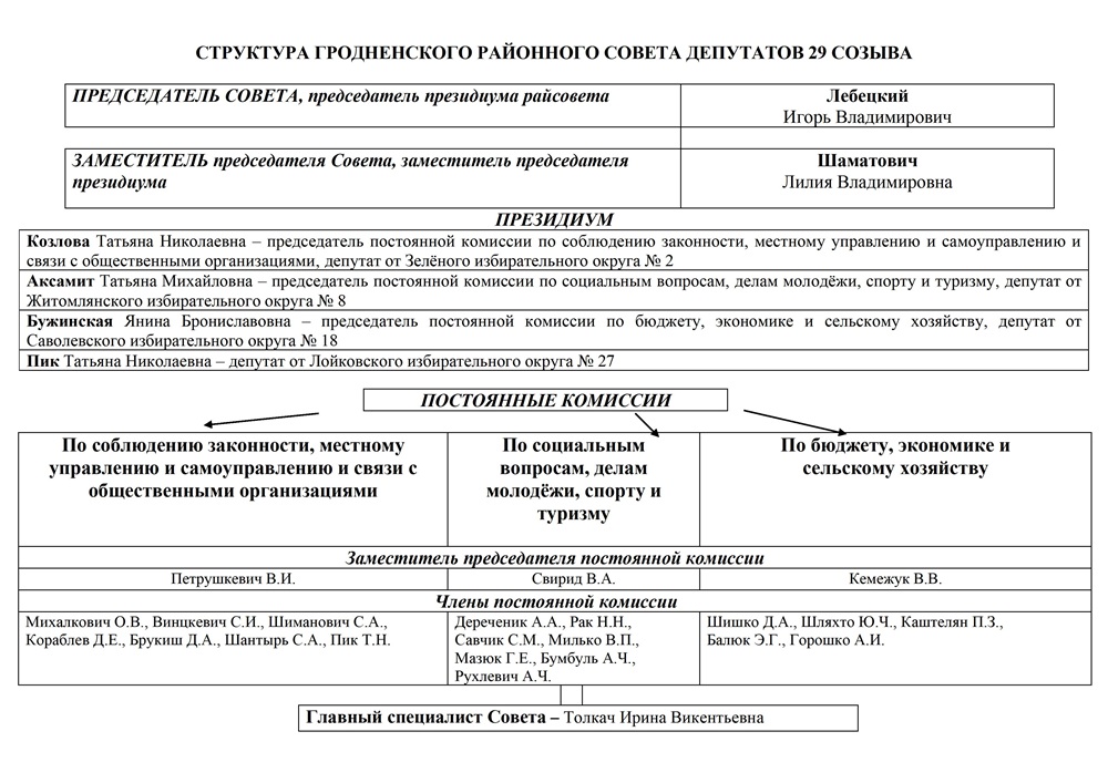 Структура районного Совета депутатов