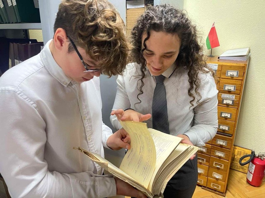 Школьники активно задавали вопросы и включались в диалог. Один из учащихся,Арсений Жук, рассказал начальнику отдела загса Лилии Щиглинской о том, что его бабушка и дедушка в этом году отметили золотую свадьбу. Он хотел посмотреть запись акта регистрации их брака. Но в архиве отдела ее нет, так как расписывались они на Брестчине. Зато нашли запись о рождении мамы Арсения, а в ней указано, где проживали и кем работали бабушка и дедушка школьника.