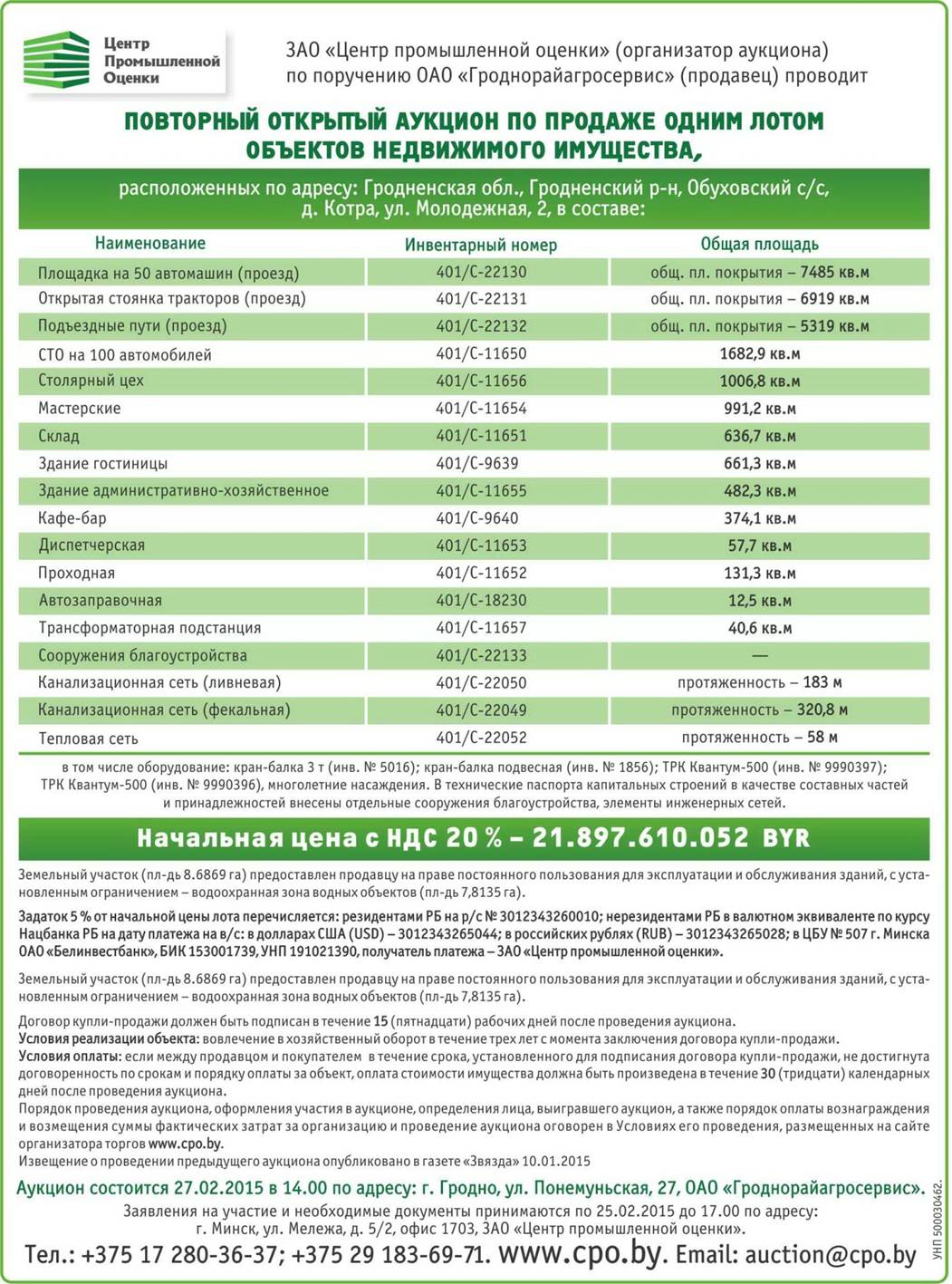 Аукцион 19 октября 2015 г. (по продаже неиспользуемого имущества Гродненского и Щучинского районов)(файл в формате .zip)